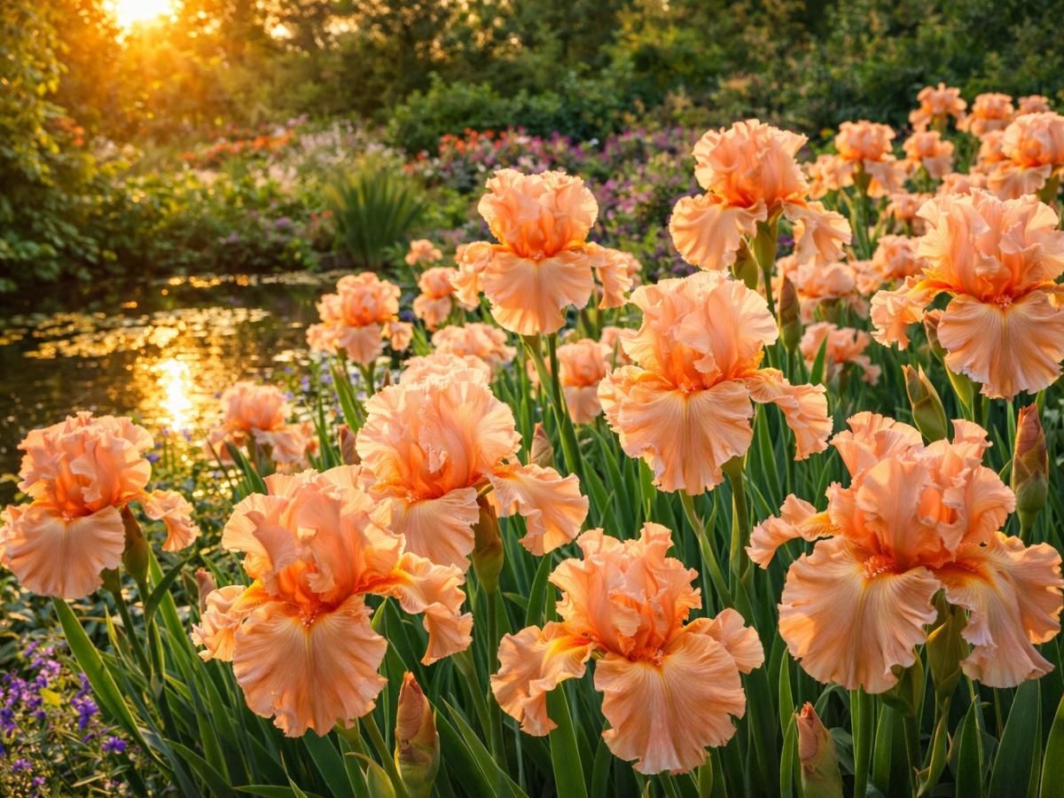 Этот ирис особенно эффектен в групповых посадках, где создаёт "персиковые шапки", наполненные светом. Он гармонично смотрится рядом с растениями, которые подчёркивают его мягкую окраску.