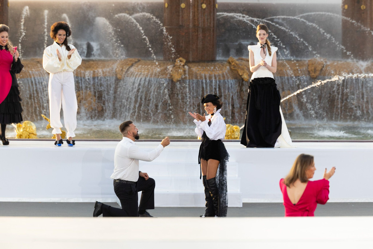 Проект Phata-Morgana открыл пятый день Московской недели моды на Болотной площади и стал настоящим театром символов. В новой коллекции дизайнер обращается к идее моды как искусства иллюзии — отсюда и глубокий черный бархат, покрывший не только одежду, но и сам подиум. Этот материал становится метафорой творческой энергии и утонченной драмы. Среди монохромных силуэтов внезапно появляются белоснежные акценты — топы, колготки, туфли, будто проблески света в густой тьме. Коллекция строится на игре противоположностей: чувственный гранж встречается с лаконичным минимализмом, смелые вырезы и графичные плечи — со строгими линиями кроя. Phata-Morgana демонстрирует, как мода может быть одновременно философской и эмоциональной, сохраняя при этом точность формы и смысловую глубину.