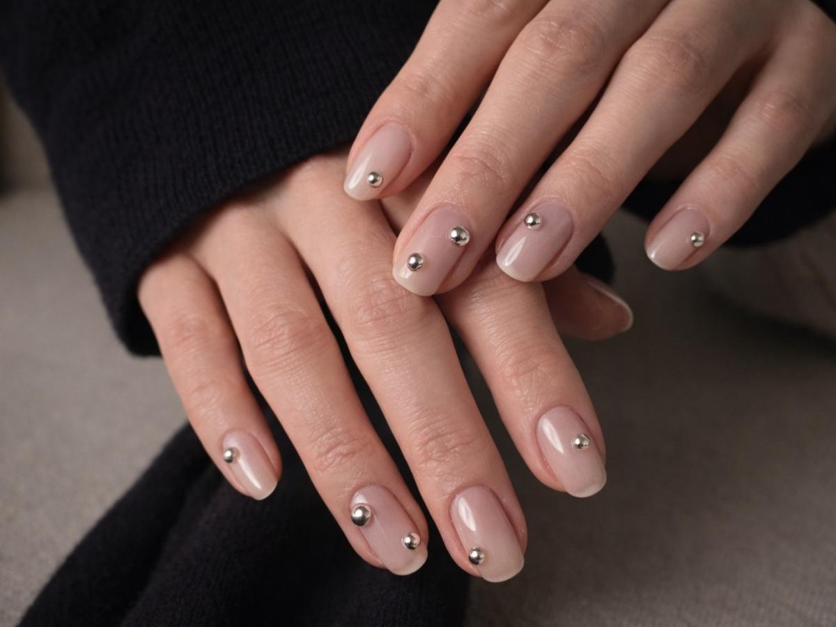 Одно из преимуществ этого маникюра — отсутствие необходимости обращаться в салон. Для его выполнения подходят обычные лаки: прозрачный, нюдовый и финишный топ. Украшения легко купить в любом магазине для творчества или на маркетплейсах.
