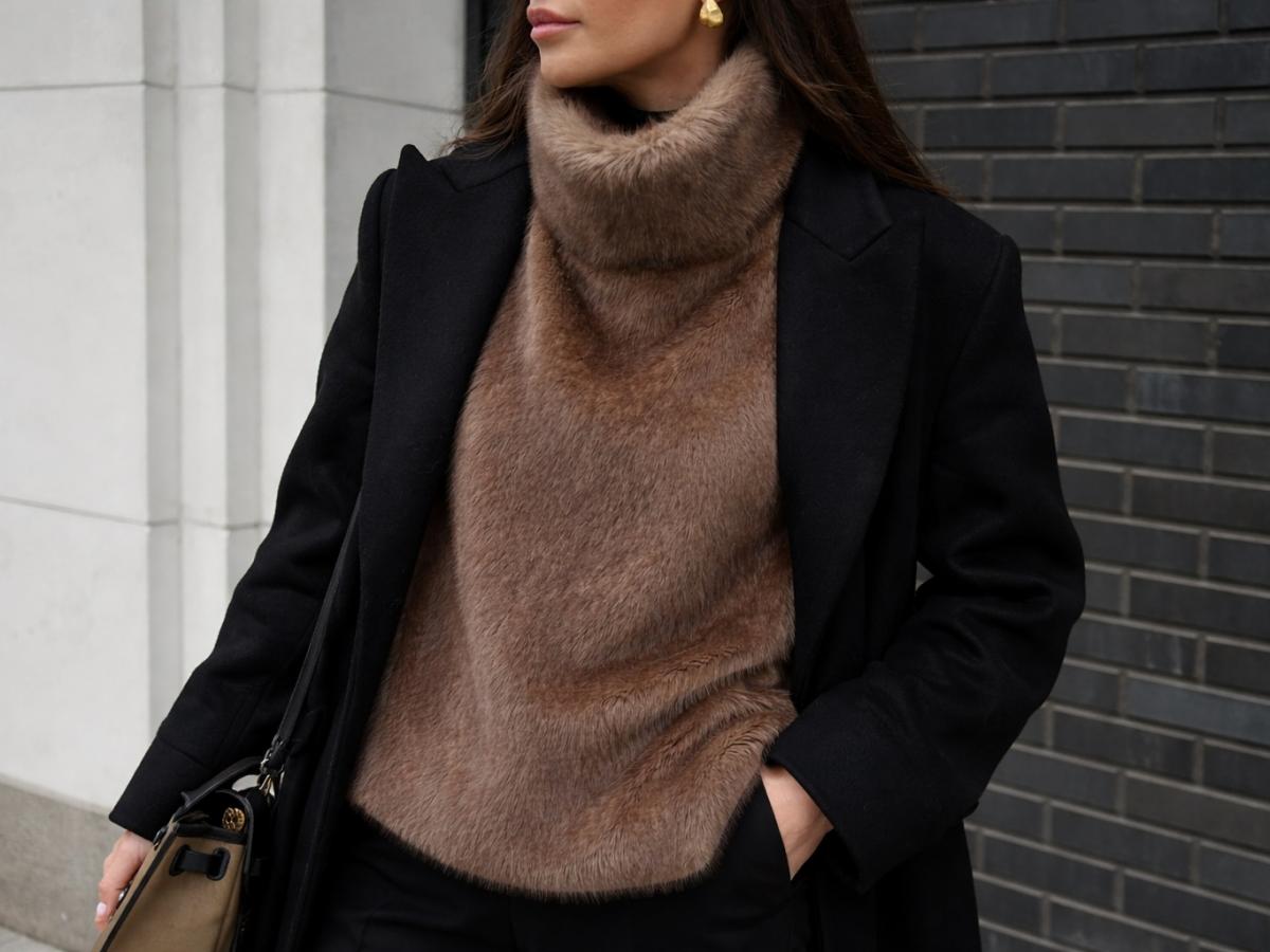 Леопардовый принт редко остаётся в тени, особенно в верхней одежде. Он требует аккуратного подхода, чтобы не перегрузить образ. Хейли Бибер выбирает меховое пальто с мягким рисунком и сочетает его с коричневыми брюками, создавая гармонию между акцентом и нейтральной основой. Такой приём позволяет сместить фокус на фактуру и рисунок, сохранив сдержанность. Лоферы и лаконичная сумка завершают образ без лишних декоративных элементов.
