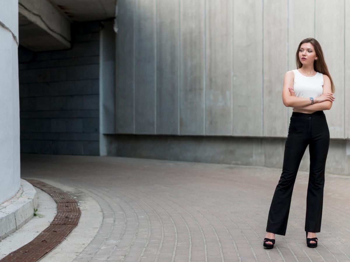 Выбирайте расклёшенные джинсы с актуальной посадкой и умеренным клёшем.