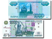 По словам первого зампреда Банка России Георгия Лунтовского, на купюру достоинством 1000 рублей приходится 95% выявляемых подделок. Если в 2009 году было выявлено 150,588 тыс. фальшивых банкнот достоинством 1 тыс. рублей, то за пять месяцев 2010 года — 55,658 тыс.