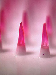 Сначала действие микроигл ученые проверили на коже свиньи. По данным эксперимента, иглы проникали на глубину около 200 микрон и через одну минуту начинали растворяться в тканевой жидкости. В течение пяти минут рассасывалось 89% вещества микроиглы.