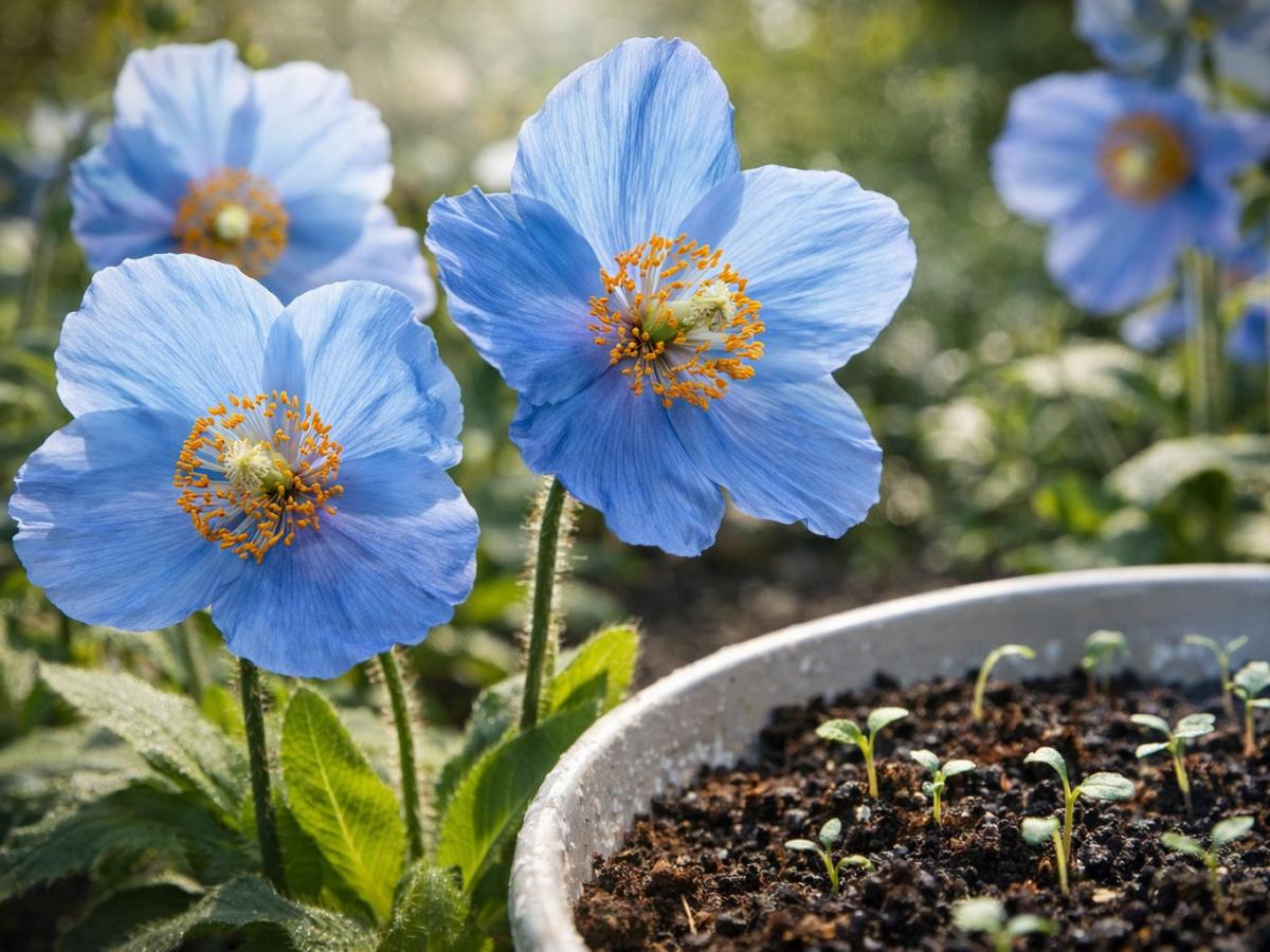 В отличие от привычных маков, меконопсис не любит сухого лета и прямого солнца. Он растёт медленно, требует холодной стратификации и стабильной влажности. Зато по декоративности и уникальности окраски ему практически нет равных.