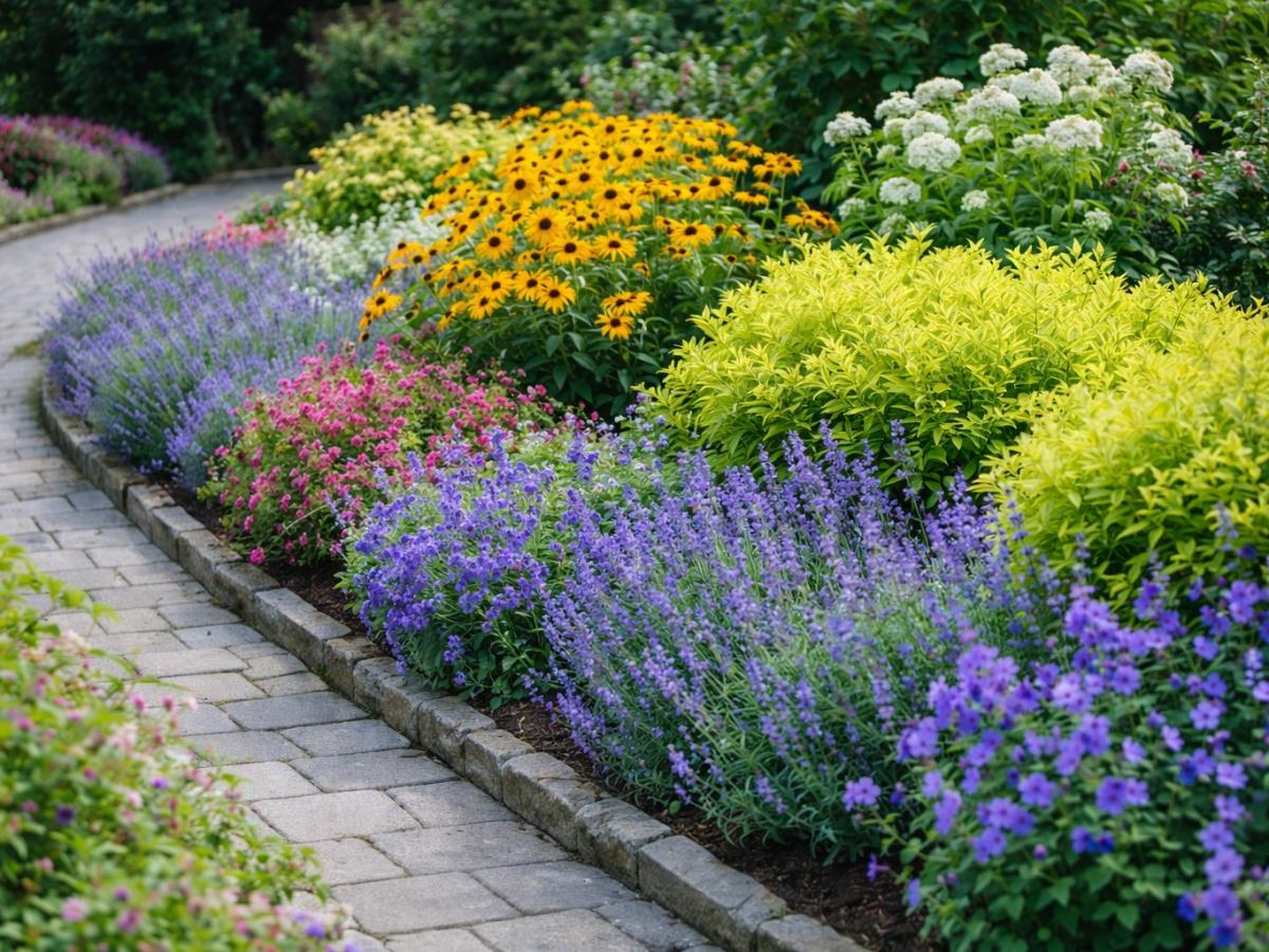 Для постоянных дорожек, миксбордеров и зон у газона многолетники чаще оказываются практичнее и экономичнее.