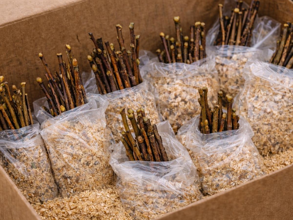 Когда приходит время высадки, черенки извлекают из хранилища и внимательно осматривают. Здоровая кора остаётся гладкой, а свежий срез — светло-зелёным и влажным. Перед укоренением нижнюю часть побегов часто замачивают в стимуляторе корнеобразования, чтобы ускорить развитие корней и повысить приживаемость.