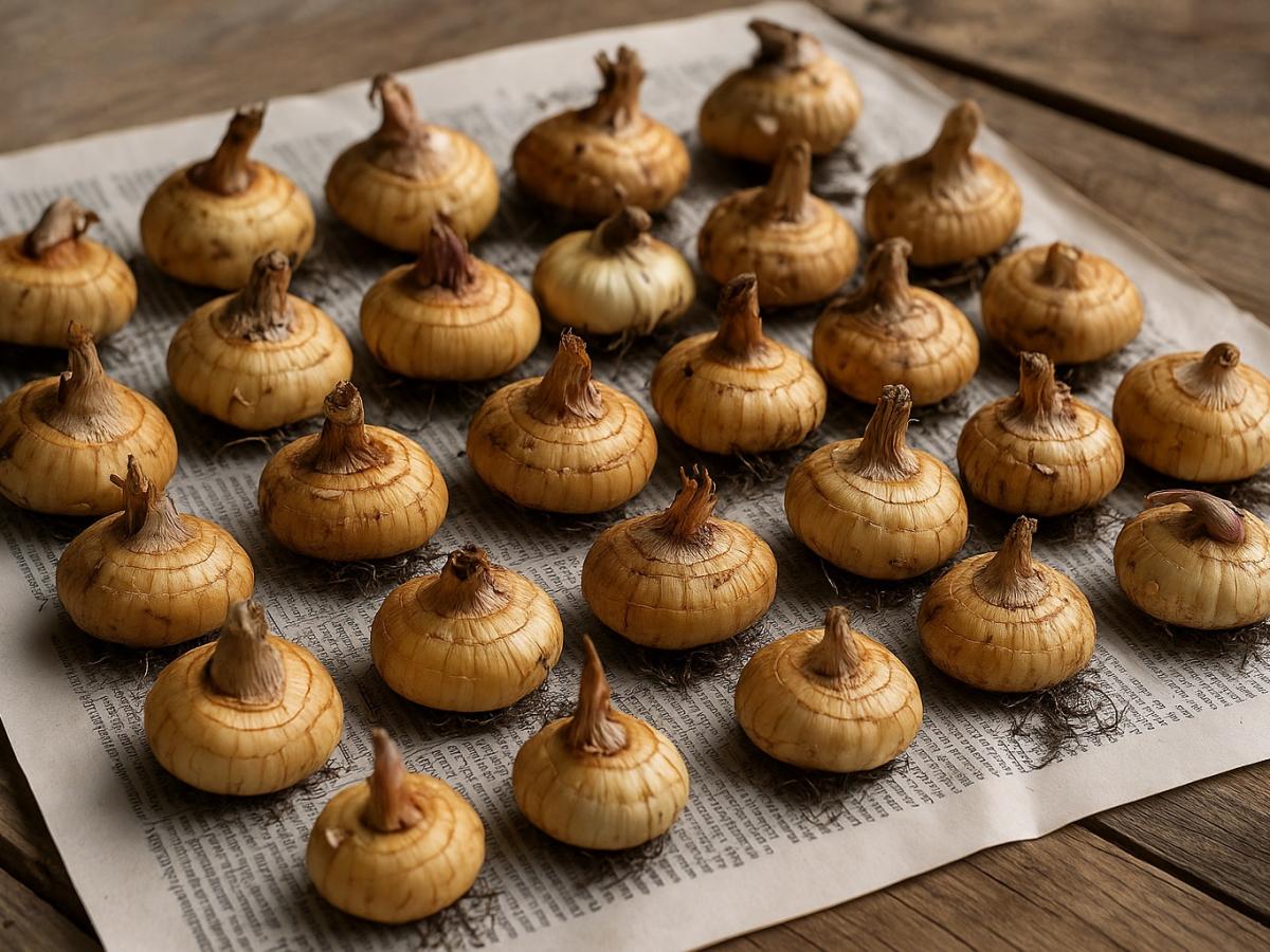После выкопки клубнелуковицы очищают от корней и укорачивают стебли, оставляя "пенёк" длиной 1-2 см. Такая обрезка снижает испарение влаги и уменьшает риск загнивания.