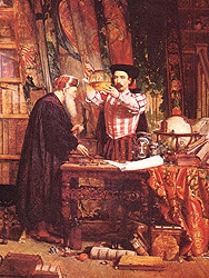 В 1602 году профессор из Фрайбурга (Швейцария) Вольфганг Динхайм встретил одетого в черное человека, предложившего продемонстрировать ему возможности алхимии (Динхайм в алхимические чудеса не верил). Незнакомец вручил профессору маленький пакетик с желтым порошком и приказал смешать его с расплавленным свинцом. Через какое-то время вся масса в тигле обратилась в золотой слиток.