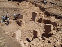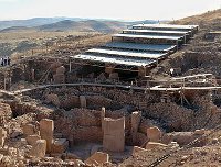 Археологические раскопки в Гебекли-Тепе (Göbekli Tepe) ведутся с 1994 года, но далеки от завершения: общий план мегалитического сооружения поражает даже исследователей. На территории памятника находятся до 20 каменных колец диаметром от 10 до 30 метров, вдоль стен расположены почти 20-тонные Т-образные столбы из известняка — большинство из них трехметровой высоты. Они покрыты рельефами с изображениями животных: леопардов, лис, диких ослов, змей, уток, кабанов, диких быков, журавлей. В центре возвышаются две массивные колонны высотой около пяти с половиной метров, напоминающие валуны Стоунхенджа, но старше их на добрых 6 тысяч лет. Трудно поверить, что все это возведено во времена, когда люди, согласно распространенным теориям, даже еще не освоили сельское хозяйство.
