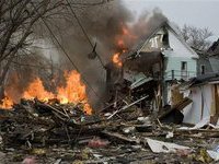 На месте здания остались одни развалины, и пожарные пока не знают, есть ли под ними тела погибших. Однако они исходят из предположения о том, что на момент ЧП в доме никого не было. Возникший после взрыва пожар перекинулся на две соседних постройки, откуда пожарным пришлось эвакуировать людей.Взрыв был такой силы, что в 11 зданиях на той же улице вылетели оконные стекла. Власти до сих пор выясняют, сколько семей придется переселять, пока их дома не будут восстановлены.Источник в местной администрации заявил журналистам, что основной версией на данный момент считается утечка и взрыв бытового газа, однако официального подтверждения эта информация пока не получила.