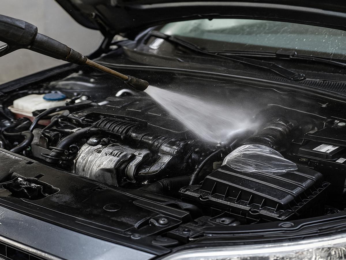 Оптимально — на чуть тёплом двигателе: так жирные отложения отходят легче. Сильно нагретый агрегат поливать нельзя — перепад температур деформирует металл и пластик. Перед началом отключите аккумулятор и снимите клемму "минус".
