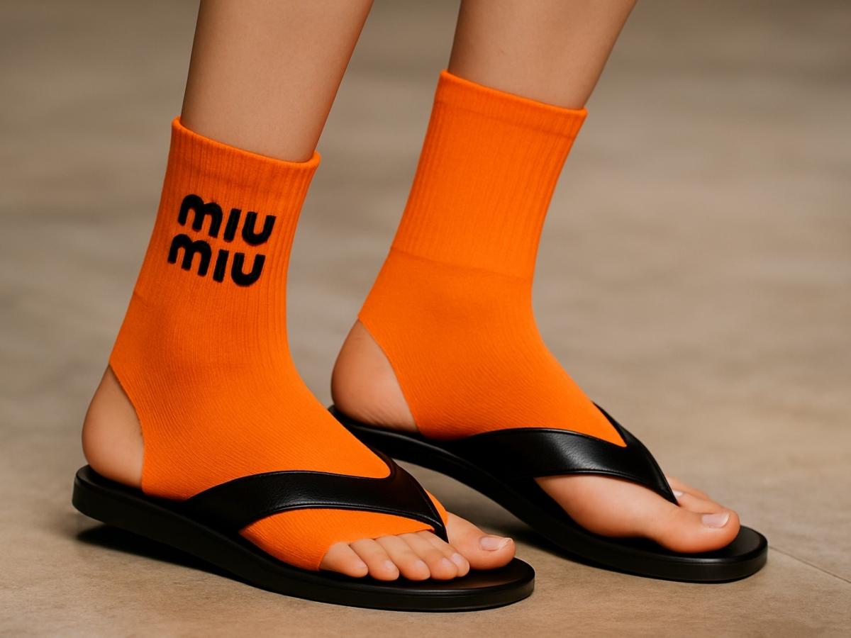 Самый обсуждаемый аксессуар с подиума: носки, в которых… нет носка. Да-да, буквально. Без мыска, пятки и даже без намёка на классическую форму. Зато — с вау-эффектом.