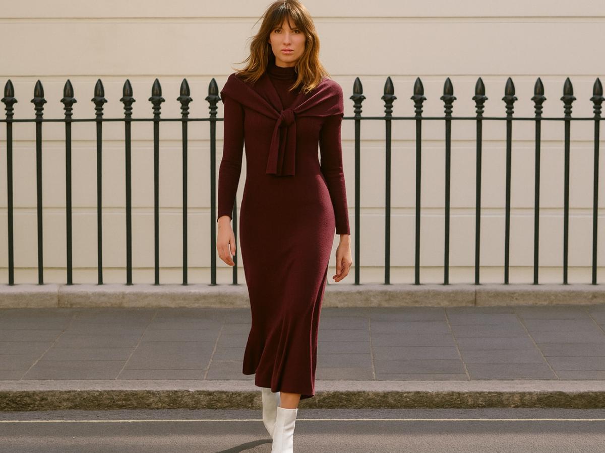 Коричневый по-прежнему прочен в верхней одежде и базовых вещах. Шоколадная замша и джинса остаются беспроигрышными вариантами. Но когда речь идёт о платьях, тонкая и роскошная глубина бордо смещает акценты. Этот оттенок уже не просто классика — он вернулся загадочным, плотным, с намёком на драму.