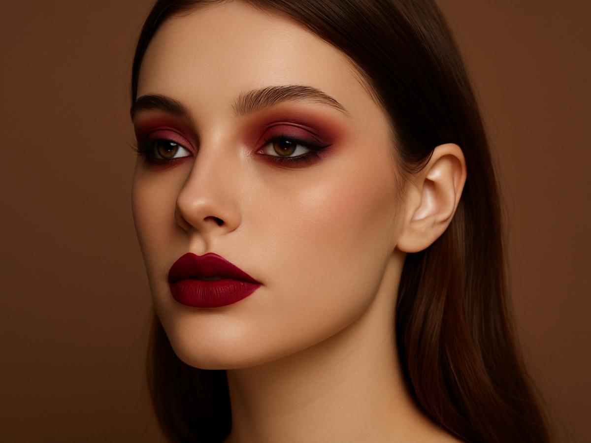 Мягкая растушёвка теней цвета красного вина добавляет глубину и лёгкую драму, но требует аккуратности: излишне тёмные оттенки могут придать усталый вид.