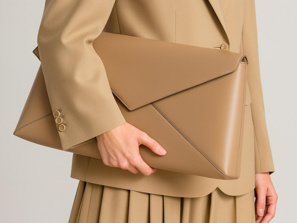 Сегодня это норма. Крупные модели-конверты заменяют папку для документов, а мешковидные сумки делают casual-образы мягче. Клатч стал универсальным аксессуаром, который легко подстроится под разные стили.