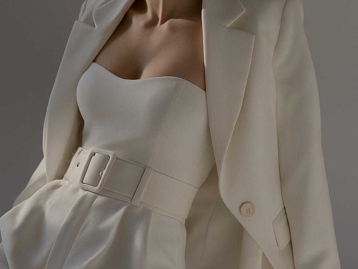 Современный хит, объединяющий строгость и женственность. Это идеальное решение для свадьбы в загсе, а позже — для деловых встреч.