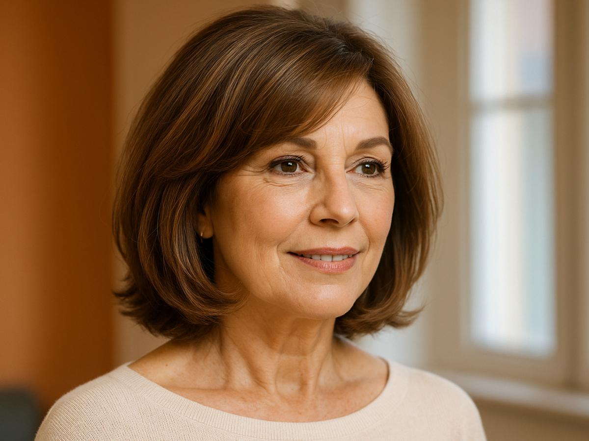 После 45 лет волосы нередко становятся ломкими, редеют и теряют блеск. Прямой тупой боб помогает решить эти проблемы сразу по нескольким причинам: