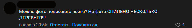 В комментариях к публикации также сообщили об уничтожении нескольких здоровых деревьев на Камышевой улице.