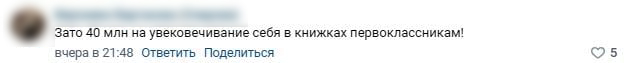 Один из комментаторов припомнил, что совсем недавно в некоторых школах Петербурга первоклассникам вручили книжки, в которых рассказывается история города и его основателя Петра Первого. Однако на первых страницах вместо портрета великого императора оказалось изображение нынешнего градоначальника Александра Беглова. Журналисты подсчитали, что это обошлось Петербургу в 40 миллионов рублей.