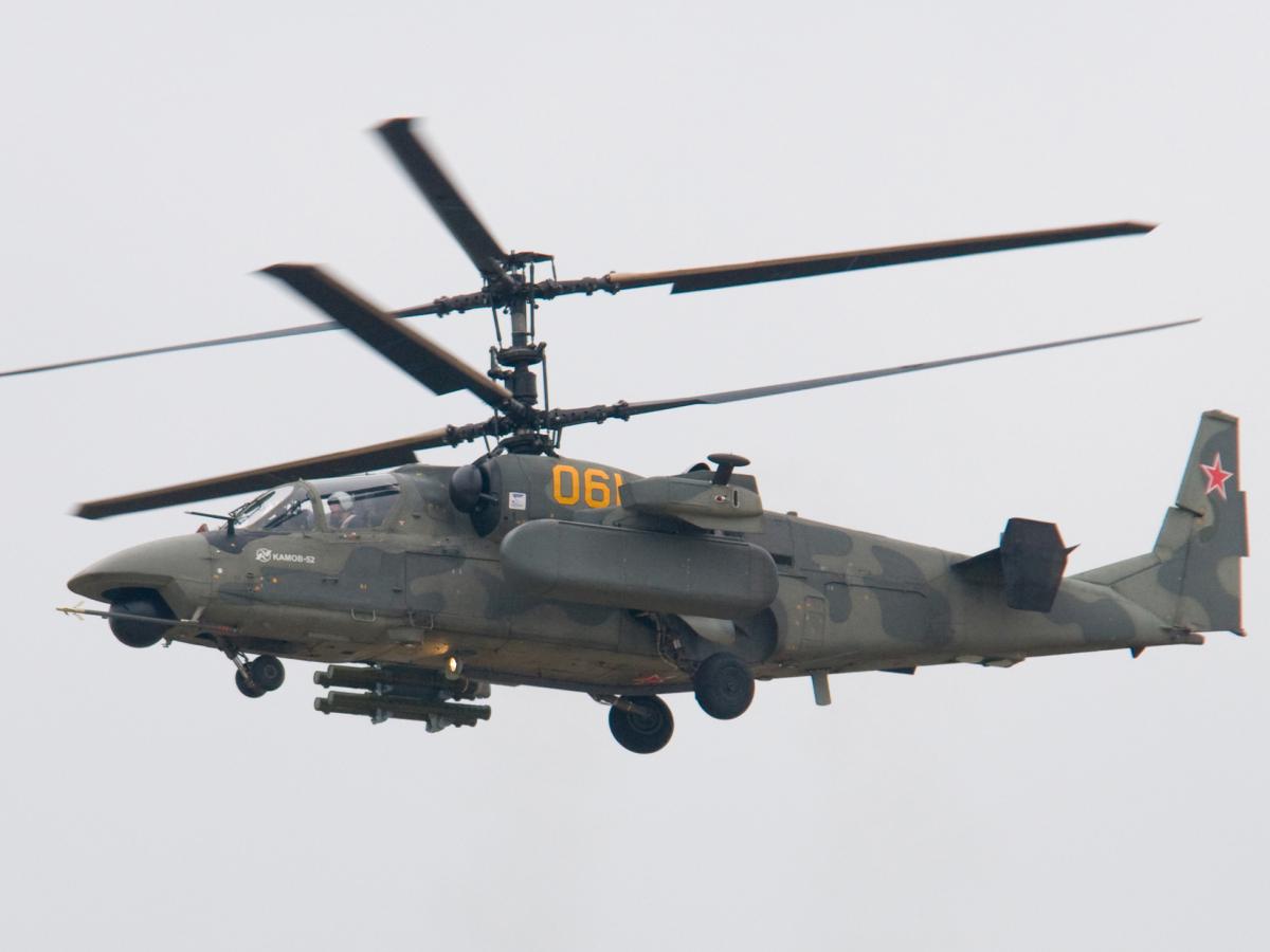 Единственный в мире боевой вертолёт с одновинтовой схемой и соосными несущими винтами Ка-50.