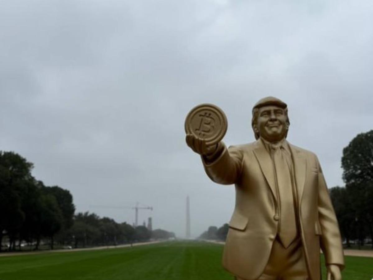 Позолоченная статуя Дональда Трампа, держащего Bitcoin, была установлена возле Капитолия в Вашингтоне благодаря финансовой поддержке неизвестных.