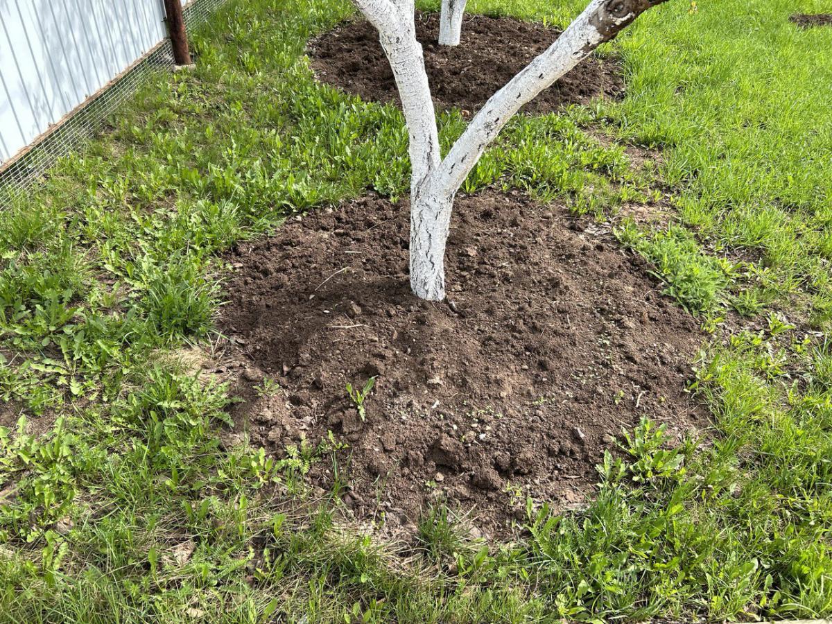 Можно сажать в участки вокруг стволов деревьев молодые рассады клубники новых сортов, выращенные зимой из семян. Это своего рода "детский сад" для рассады. Они ещё слишком слабые, чтобы расти на большой грядке, поэтому им выделяют маленький участок. К тому же, так легче следить за ними.