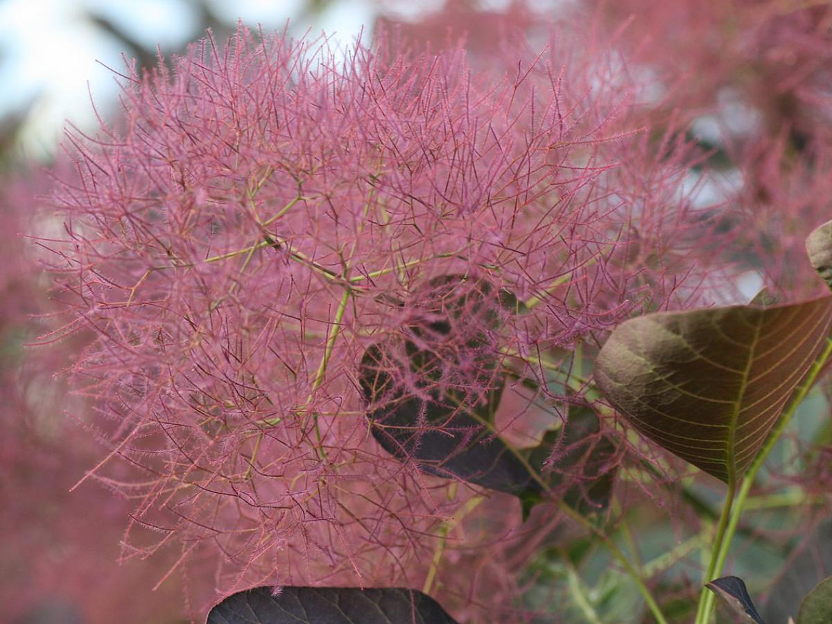 Скумпия — один из самых эффектных кустарников. Она привлекает внимание с весны до первых заморозков, а даже под снегом выглядит нарядно. Листья и соцветия скумпии создают атмосферу праздника на участке.