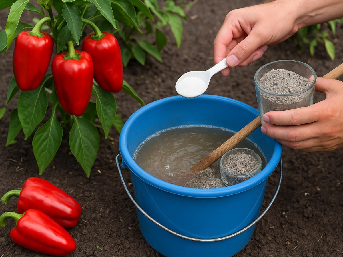 Эта смесь насытит перцы необходимым калием и микроэлементами из золы. Результат не заставит себя ждать — плоды заметно быстрее нальются и приобретут яркий, насыщенный цвет.