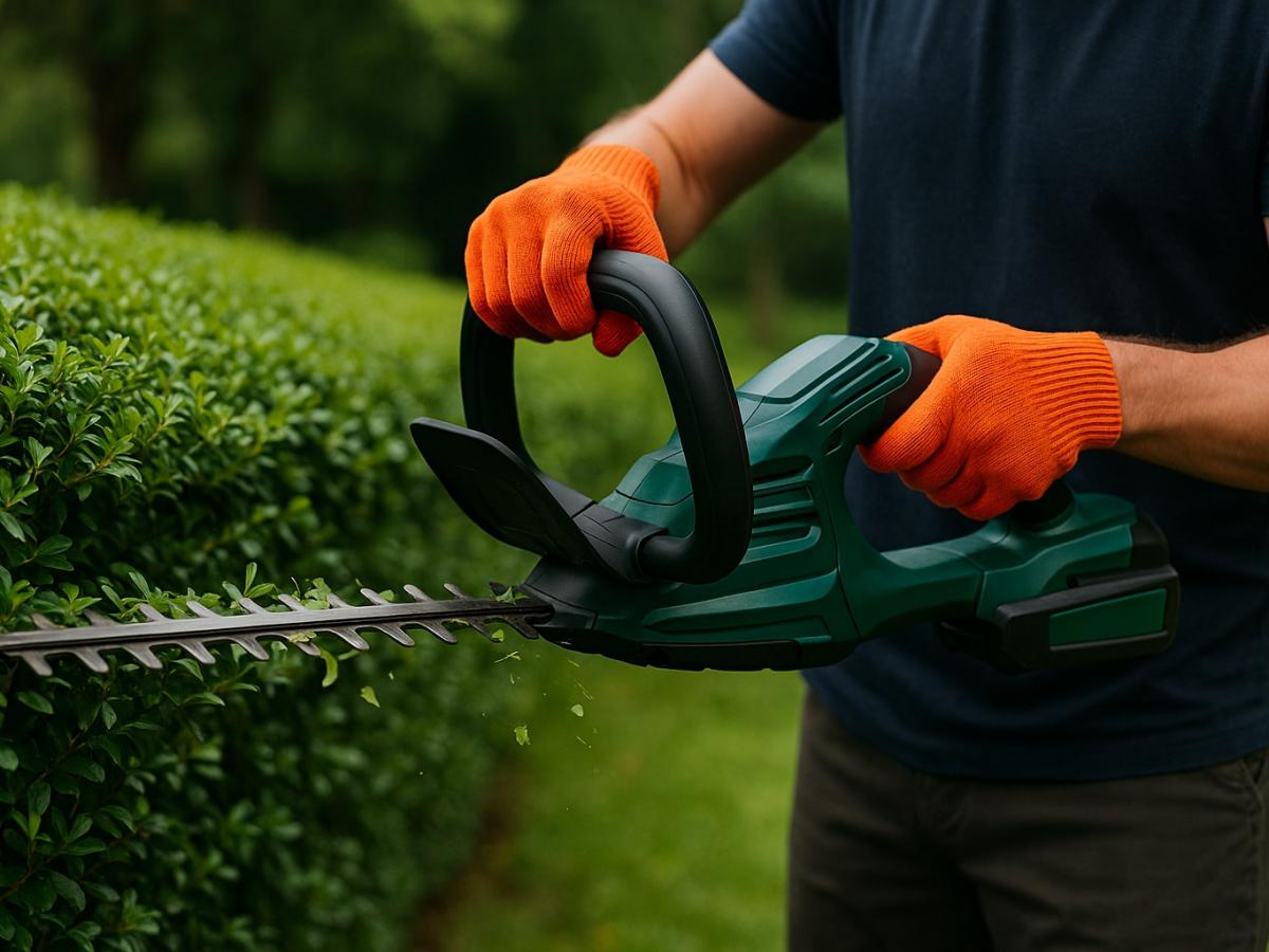 Для изгородей используйте кусторез с телескопической ручкой — он помогает работать даже на высоте до 2,5 м.