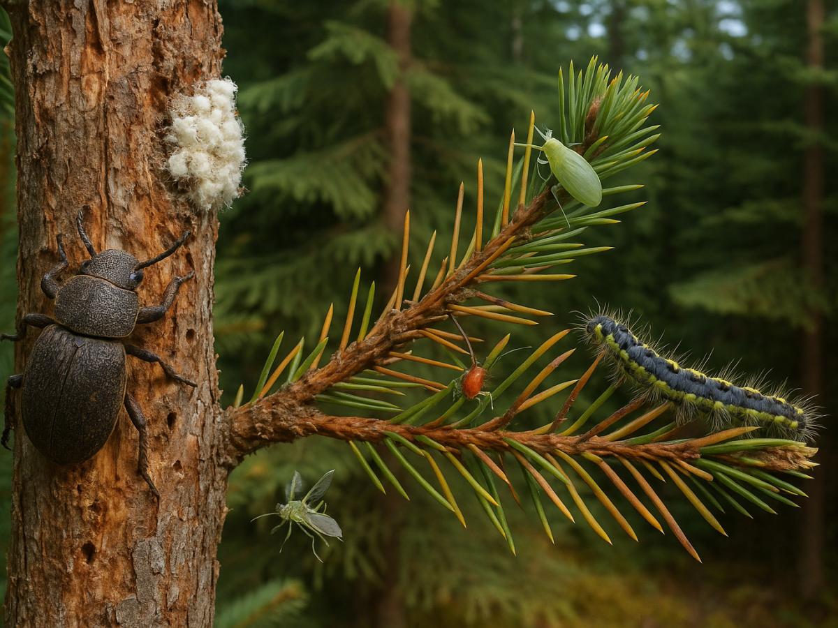 Среди насекомых и паукообразных, поражающих хвойные, выделяют несколько категорий. Их активность зависит от сезона, погодных условий и состояния самого растения.
