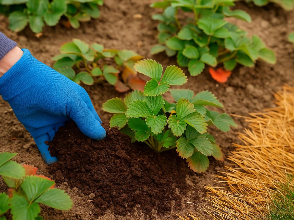 Перед первыми заморозками клубнике нужно утепление и питание. Идеальный вариант — перегной. Он не только защищает корни от холода, но и весной становится естественным удобрением.