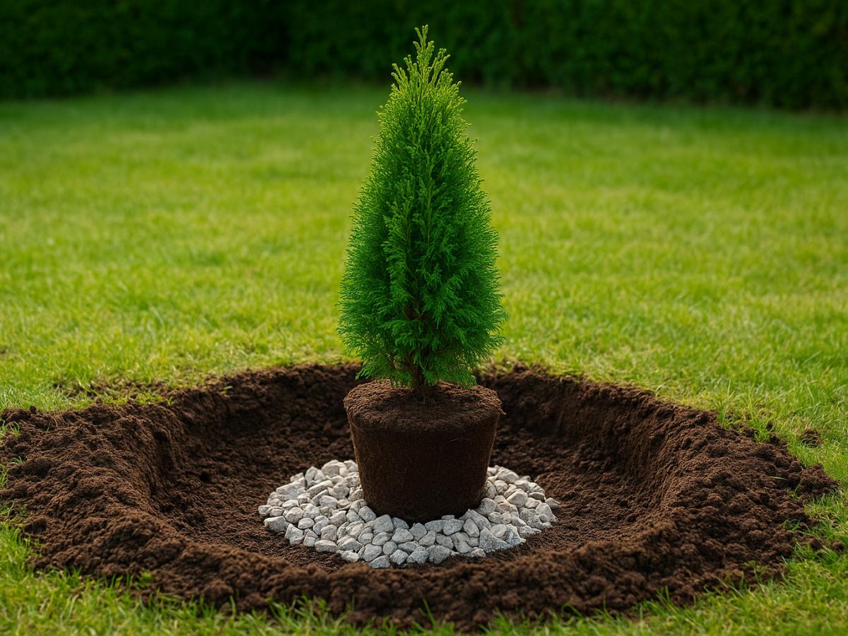 Главная ошибка новичков — сажать тую в лунку "по размеру горшка". На самом деле корневая система нуждается в просторе и воздухе. Оптимально, если диаметр ямы в два раза больше корневого кома. Такое пространство помогает корням быстро разрастись и укрепиться, особенно в первые месяцы после пересадки.