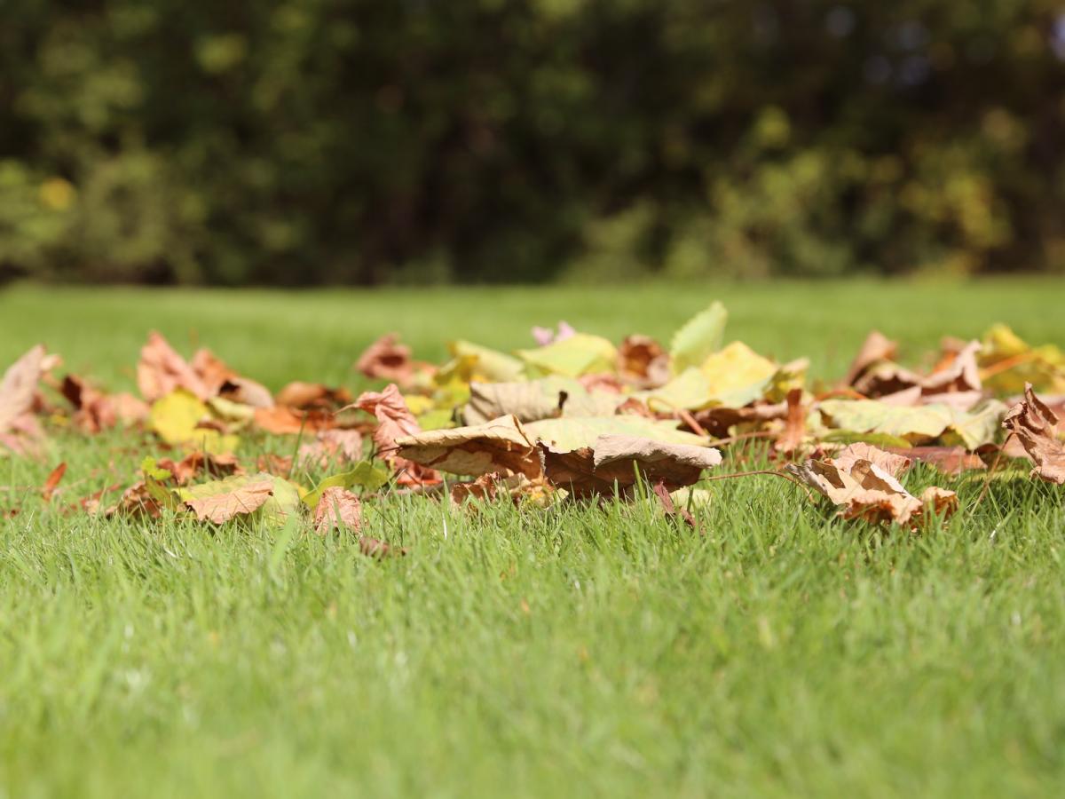 Очистка газона. Перед внесением уберите листья, ветки и мусор, чтобы гуща легла равномерно.