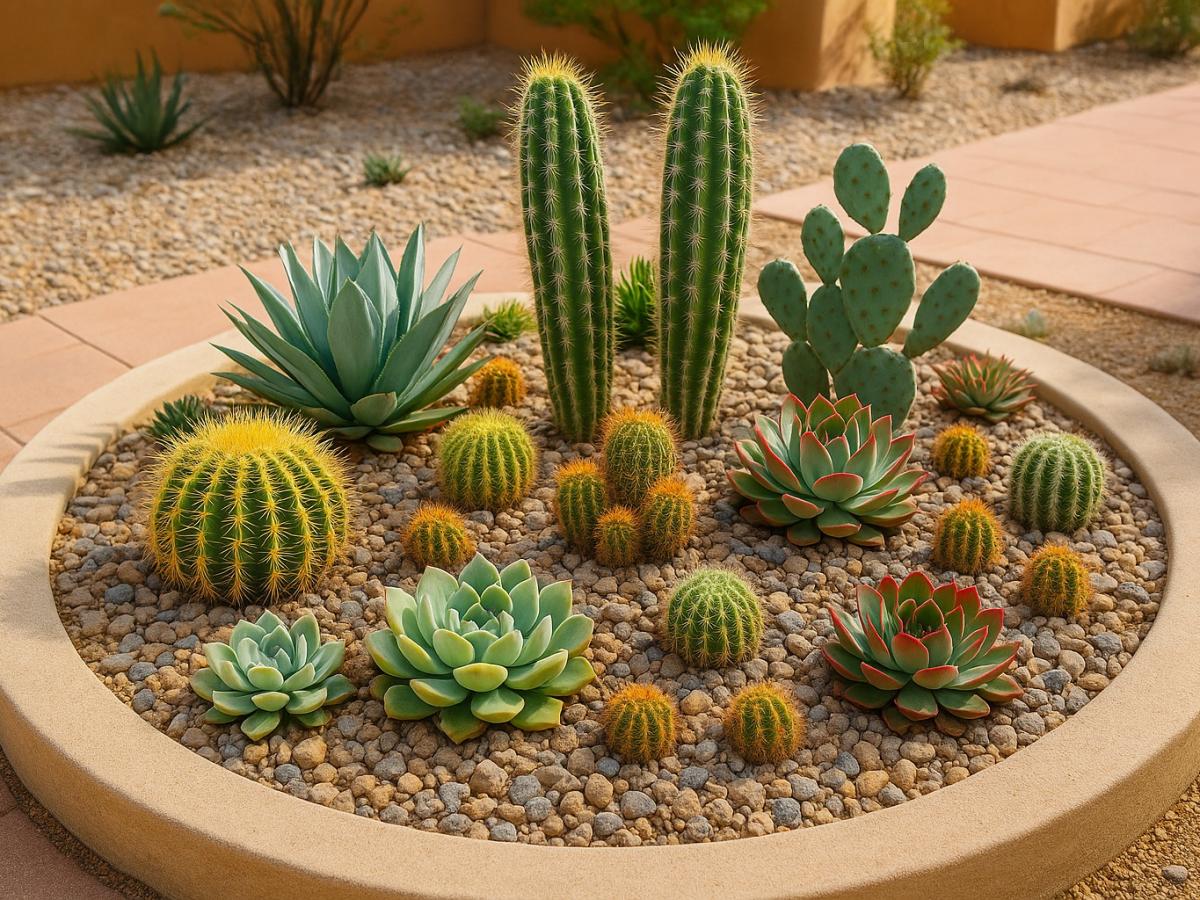 Если вы устали от постоянных поливов и капризных растений, клумба из кактусов и суккулентов — ваш идеальный выбор. Эти колючие красавцы стойко переносят жару, засуху и даже редкие заботы со стороны хозяина, а выглядят при этом невероятно эффектно.