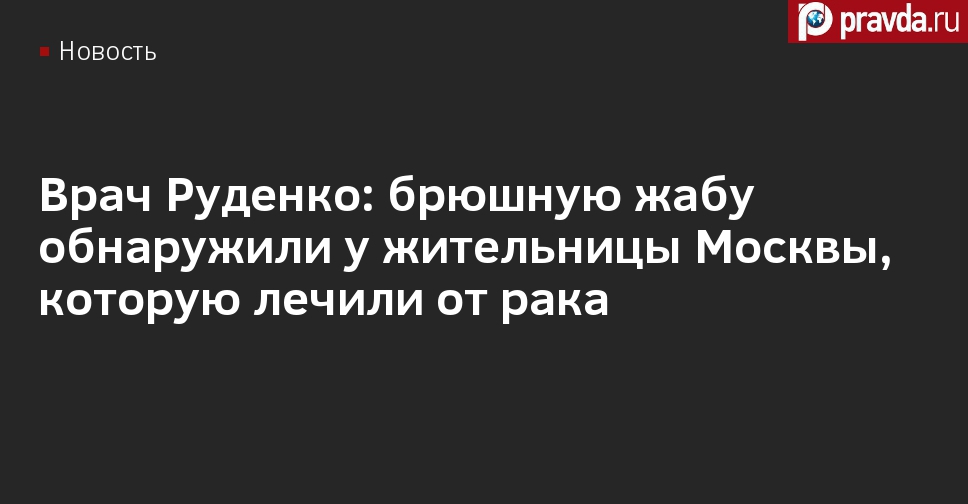 Московская жительница проходила лечение от рака более двух лет, прежде чем было выявлено, что причиной её болезни является брюшная жаба. Информацию об этом предоставил врач-хирург, заместитель главного врача "Скандинавского центра здоровья", доктор медицинских наук Борис Руденко.