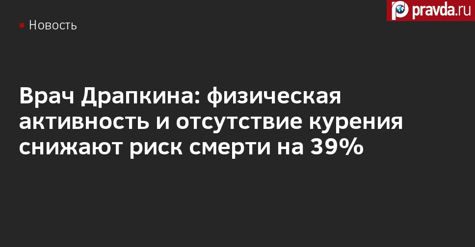 Терапевт также подчеркнула, что игнорирование здорового образа жизни увеличивает вероятность преждевременной смерти на 78%. Вместе с тем, этом генетически обусловленный риск летального исхода можно снизить на 60% с помощью разумного подхода к заботе о своём здоровье.