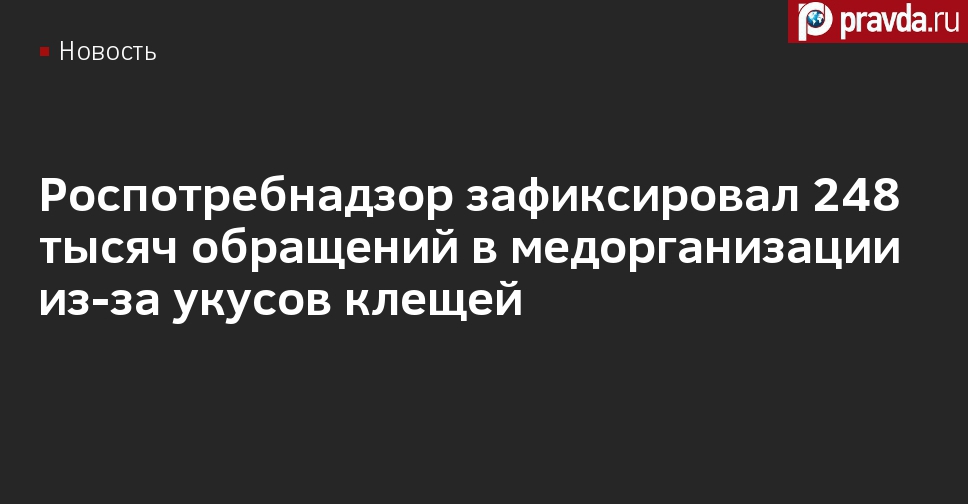 "В России от клещевого вирусного энцефалита привиты 3,3 млн человек. К настоящему моменту в медицинские организации в связи с уксусами клещей обратились более 248 тыс. граждан", — сообщает Роспотребнадзор.