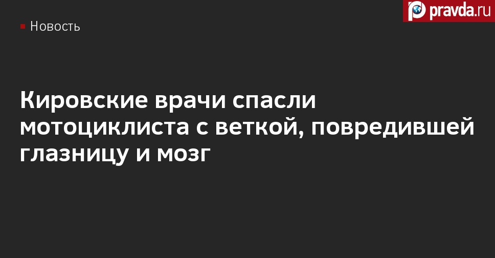 В Кировской области врачи провели успешную операцию по извлечению ветки, застрявшей между глазом и головным мозгом у мотоциклиста, о чём сообщила пресс-служба регионального Минздрава.