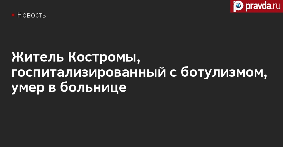 В России зафиксирован первый случай смерти от ботулизма после массового отравления: 21-летний житель Костромы, заразившийся в Нижнем Новгороде, умер в больнице. Об этом сообщили в пресс-службе Администрации Костромской области.