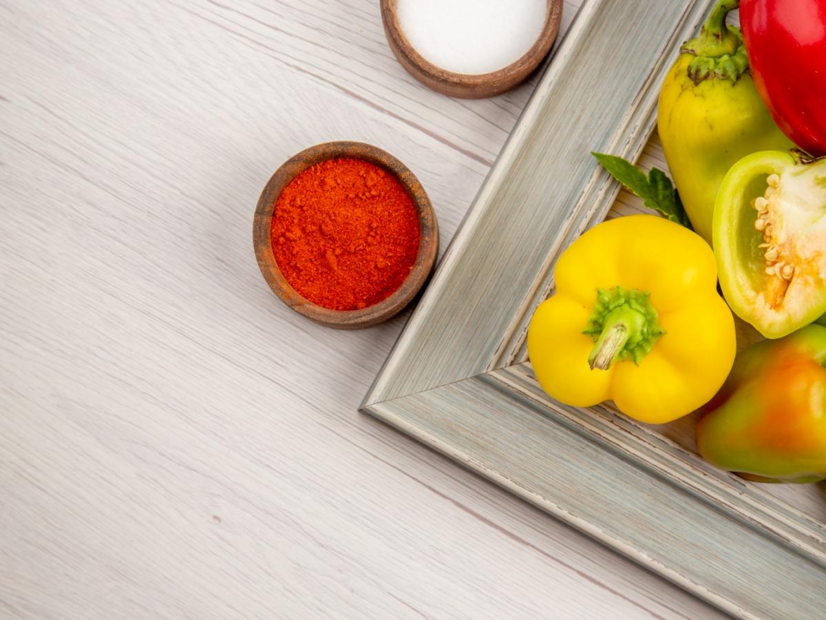 Используйте разные цвета перца: жёлтый богат каротиноидами, красный — витамином С, зелёный — хлорофиллом.