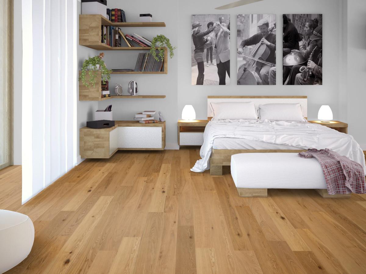 Идеал — натуральный дуб. Но при желании можно выбрать качественный ламинат или кварцвинил в натуральных оттенках.