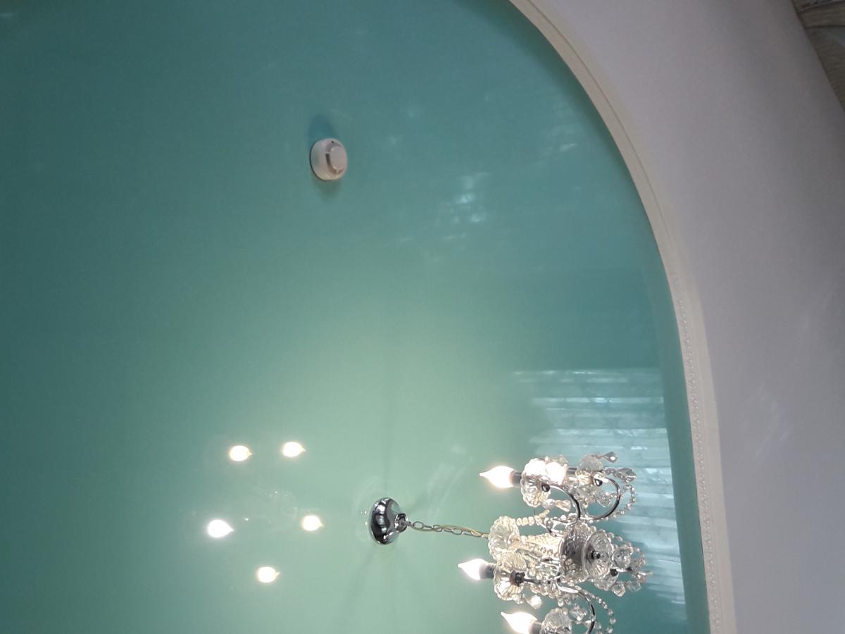 Совет: Глянцевые потолки отражают свет, поэтому берите лампы меньшей мощности или закрытые абажуры.