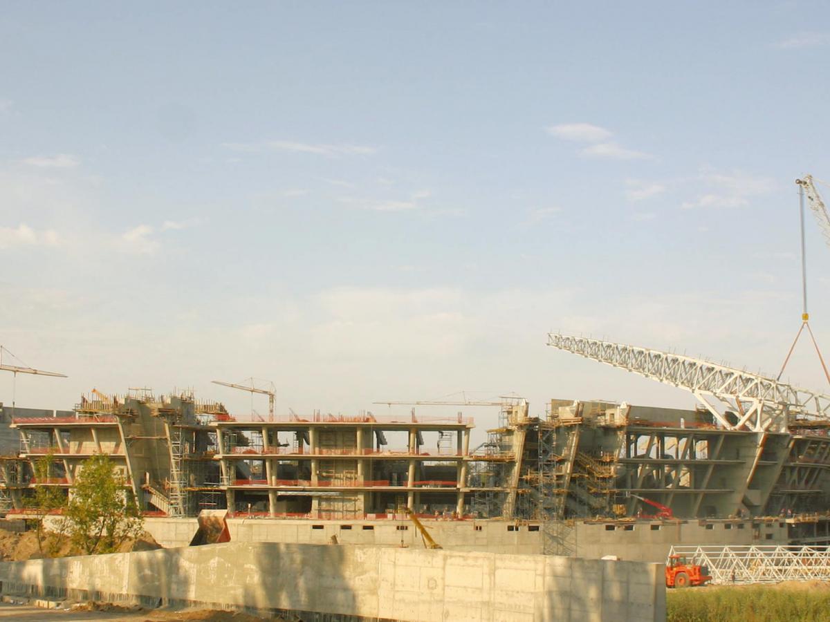 В сердце будущего квартала — современный стадион на 22 000 мест, полностью соответствующий требованиям УЕФА и ФИФА. Помимо основного сооружения, в проект входят VIP-зоны, спортивные и административные секции, подземная парковка и торговая инфраструктура. Общая площадь спортивного комплекса — внушительные 78 500 кв. м.
