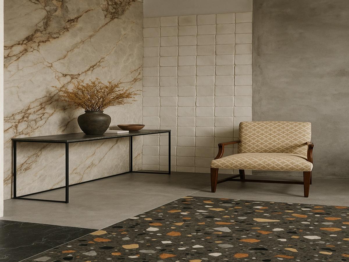 Наиболее частая проблема — перепад толщин. Так, у мраморного слэба около 30 мм, а у керамогранита — всего 5-9 мм. Даже слой клея отличается, и в итоге получаем разницу в высоте покрытия. Да, мастера могут "подогнать" стяжку, но это работа ювелирного уровня.