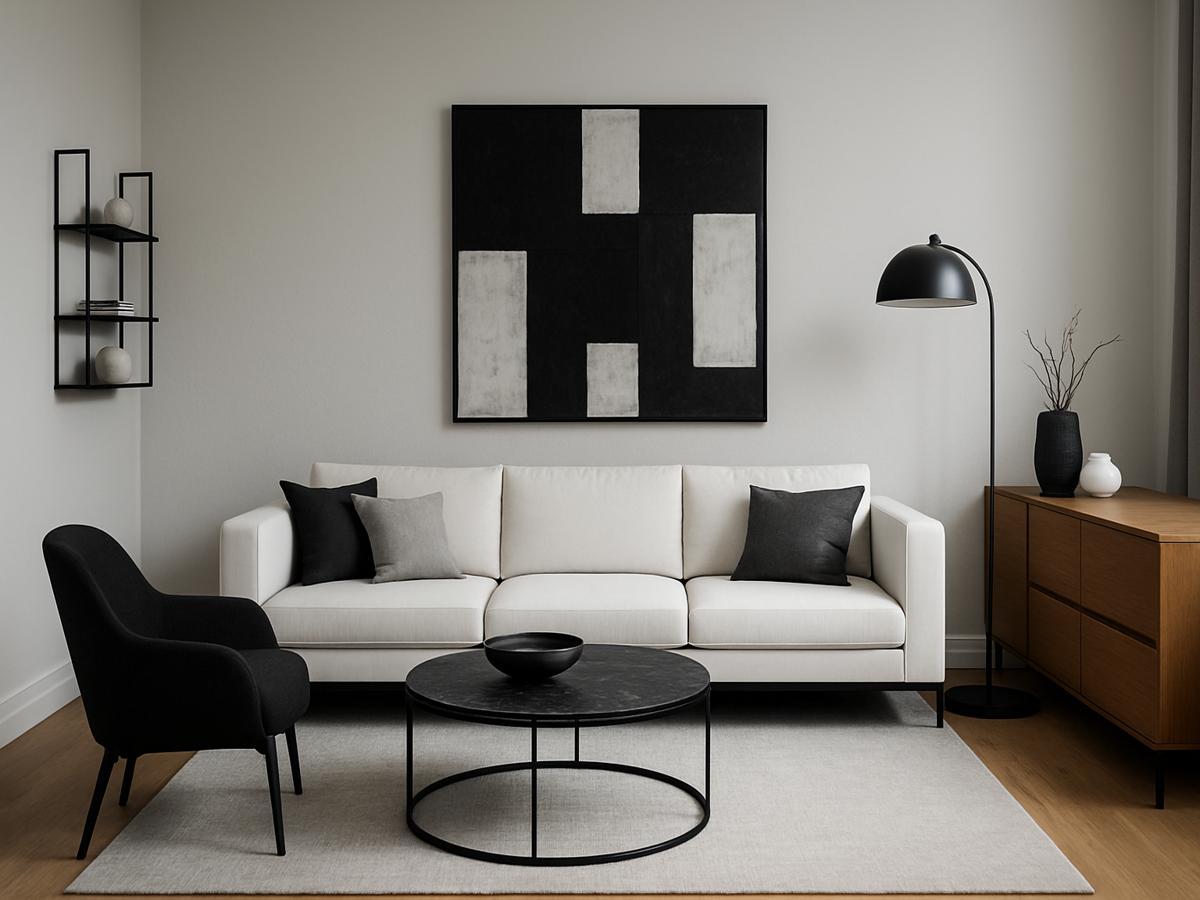 Эта палитра никогда не подведёт. Белый и серый создают основу, а чёрный добавляет глубину и акценты. Чтобы избежать "стерильности", используйте дерево, мягкие ткани, добавьте пару цветных деталей и больше естественного света.