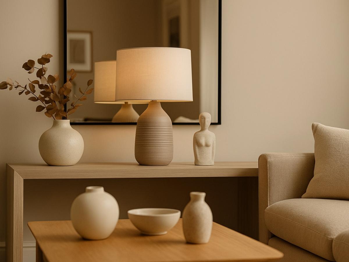 Оставьте палитру общей (например, тёплый беж/молочный), а форму меняйте: круглая ваза, прямоугольная шкатулка, овальная тарелка.