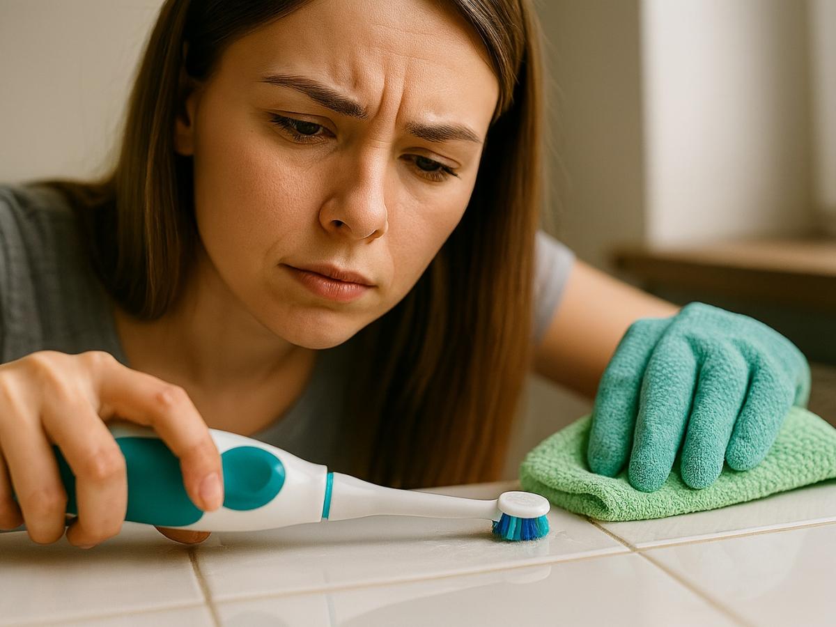 Старая щётка с вращающейся головкой превращается в мини-шлифовальную машину для самых неудобных мест. Ею легко очищать петли унитаза, швы между плиткой, углы смесителей и даже решётку соковыжималки. Щётка достаёт туда, куда не подлезет губка или тряпка, и удаляет грязь без лишних усилий.