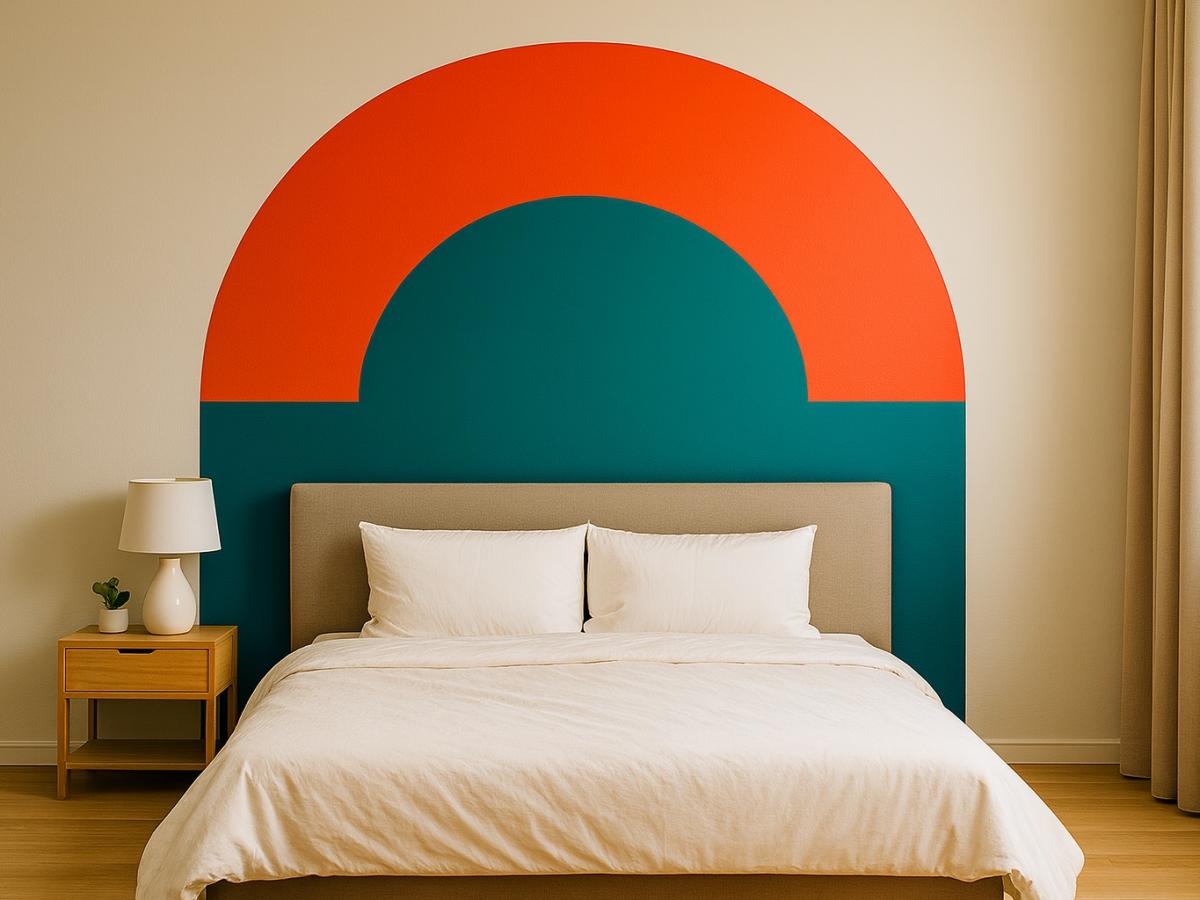 Если в вашей спальне нет изголовья, это отличная возможность проявить фантазию. Достаточно покрасить участок стены за кроватью — например, контрастной полосой или мягким градиентом. Это визуально "соберёт" зону сна и создаст ощущение уюта.