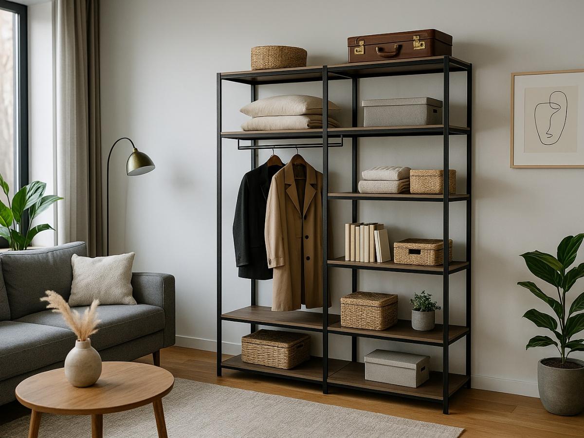 В отличие от закрытых шкафов, где вещи часто "теряются", открытые полки стимулируют аккуратность. Одежда, обувь и аксессуары находятся на виду, а значит, выбор наряда занимает меньше времени. Это особенно удобно для людей с динамичным образом жизни.