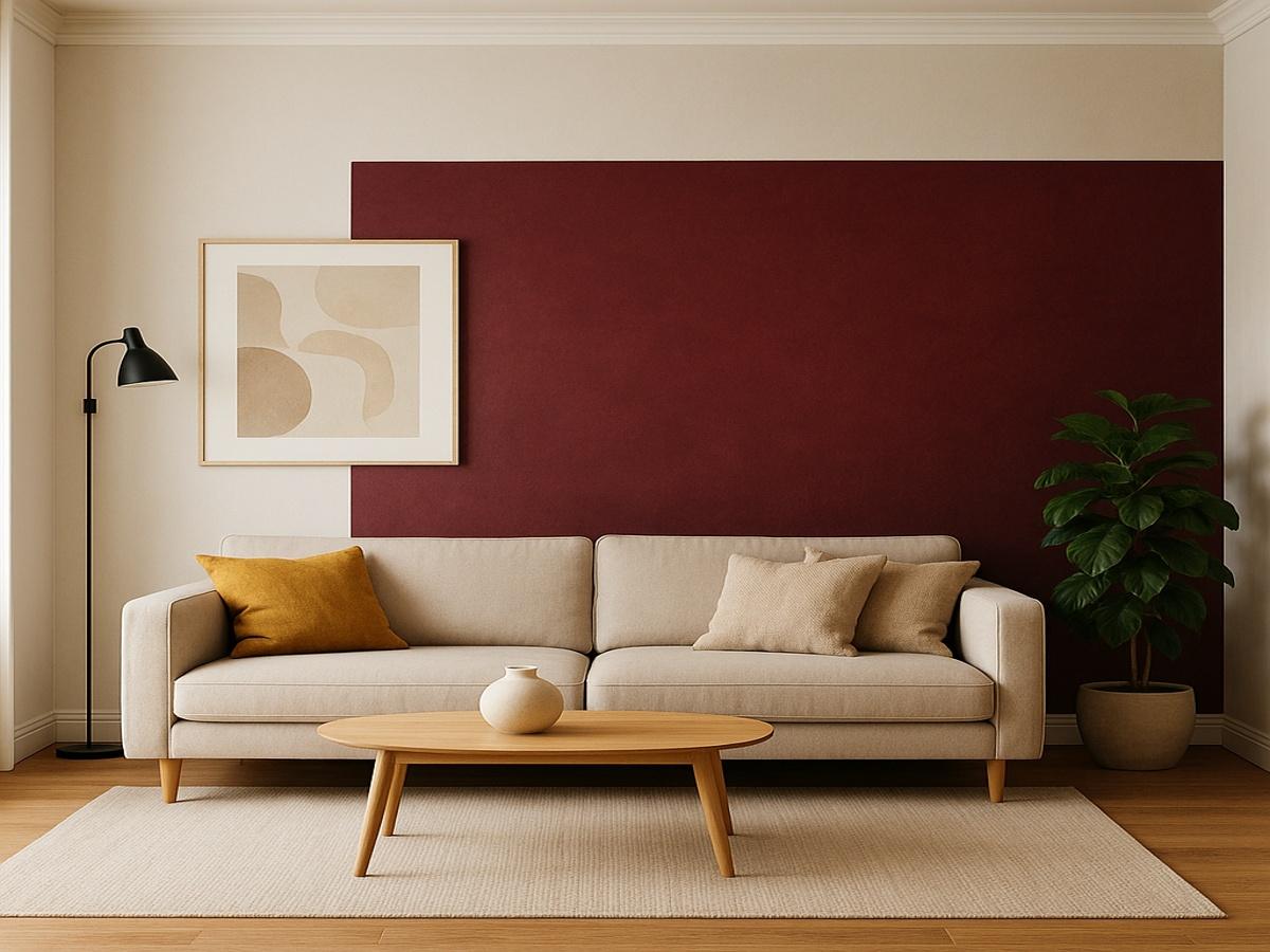 Бордо — цвет уверенности, вкуса и богатства. Он идеально подходит для уютных зон отдыха: библиотек, гостиных или столовых. Этот оттенок создаёт камерную атмосферу и при правильном освещении выглядит изысканно.